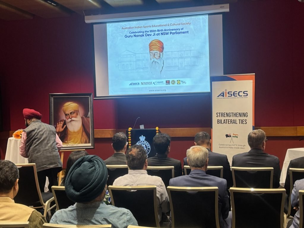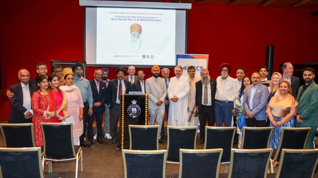 The 555th birth anniversary of Guru Nanak Dev Ji, the founder of Sikhism, was commemorated with profound reverence and joy at the Parliament of New South Wales, thanks to the efforts of the Australian-Indian Sports Educational & Cultural Society (AISECS). This extraordinary event showcased the deep significance of Guru Nanak Dev Ji’s teachings and their continued relevance in fostering interfaith harmony in today’s world.